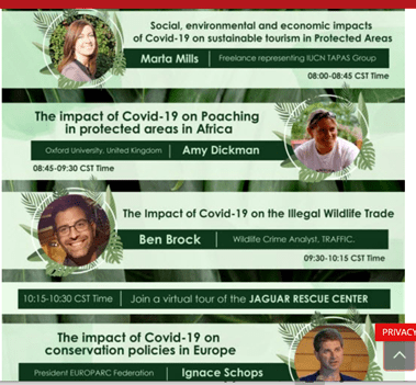On 15 January I was one of four keynote speakers at the online conference The Impacts of Covid on Conservation Worldwide , run by the Jaguar Rescue Foundation from Costa Rica. My presentation: ‘Building regenerative tourism in natural areas after Covid: impacts, lessons learnt and the way forward’ focussed on the impacts of Covid on tourism in Protected Areas, the PAs responses for far, and the way forward to build a better, more regenerative tourism as a way to build resilience after the pandemic.